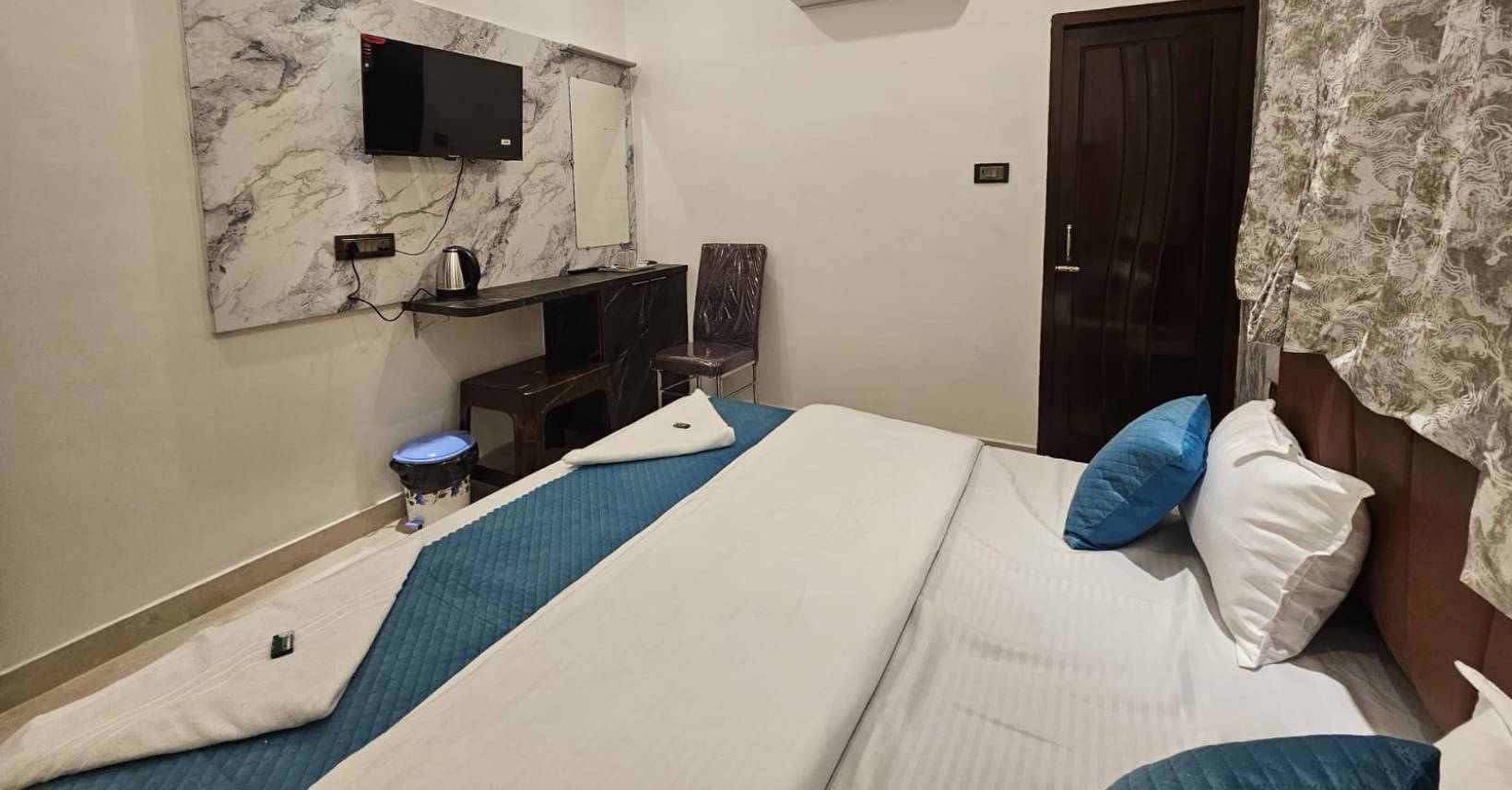 The Deluxe Room at MM Grand is perfect for solo travelers or couples seeking a cozy yet comfortable retreat in Varanasi. Elegantly designed with modern interiors, it features a comfortable double bed, air-conditioning, and a clean private bathroom stocked with complimentary toiletries. Guests can unwind with in-room amenities like a flat-screen TV, electric kettle, and wardrobe for added convenience. Soft lighting and thoughtful décor enhance the room’s welcoming ambiance, creating a peaceful space to relax after exploring the city. Ideal for short or extended stays, the Deluxe Room offers great value without compromising on comfort.
